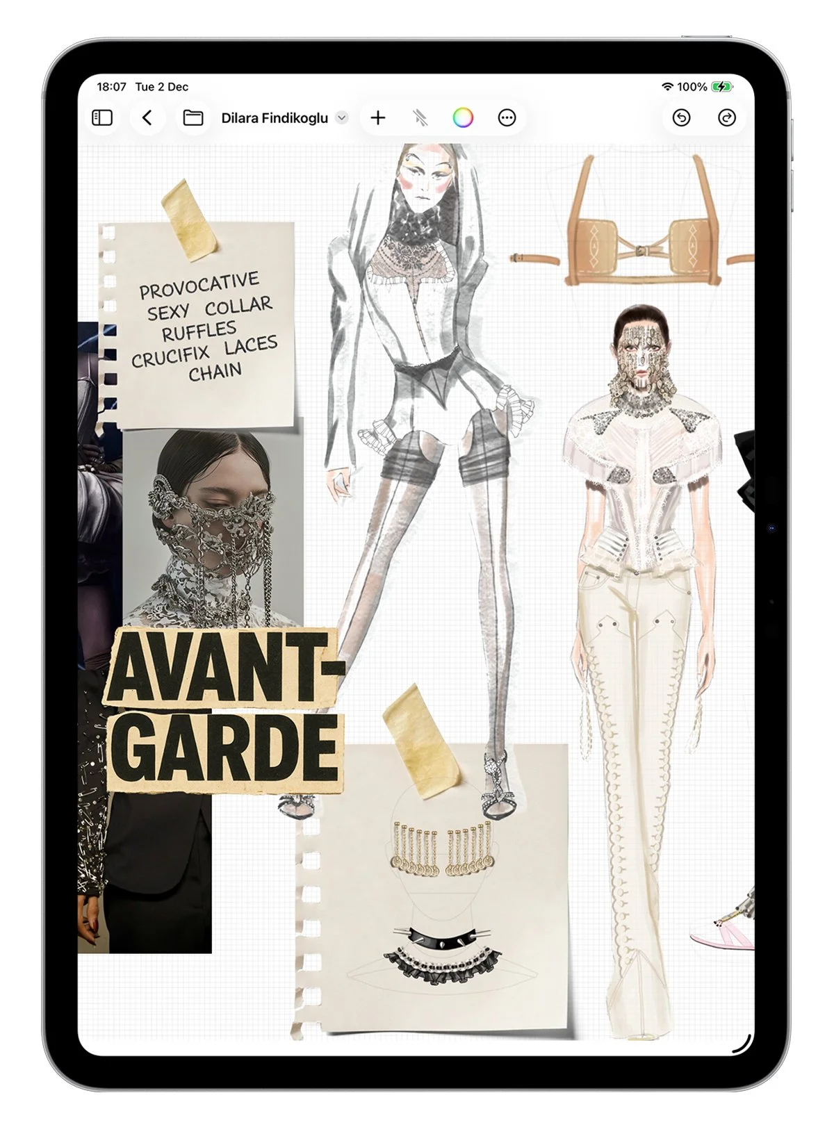 Use now... Fabrics, trims, prints, textures, stitches, and finishes. Openings, pockets, sleeves, cuffs, armholes, necklines, collars and more. And every element essential to the fashion creation process easy to compose and endlessly adaptable, this space becomes your sketchbook, your research wall, your materials lab, and your presentation board. The CANVA of fashion — but built with the depth and logic only true fashion expertise can deliver.
